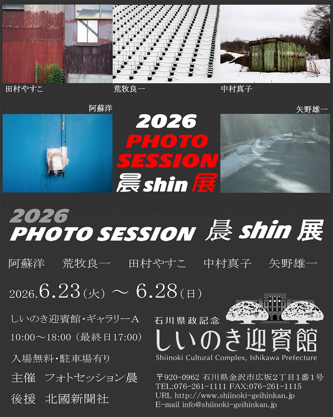 一般主催展 2026 PHOTO SESSION 晨 Shin 展 開催期間 2026年6月23日(火)~6月28日(日) 開催時間 10:00~18:00(最終日は17時まで) 会場 ギャラリーA 料金 入場無料 【後 援】北國新聞社 一覧に戻る トップページ イベント一覧 2026 PHOTO SESSION 晨 Shin 展 イベント TOP
